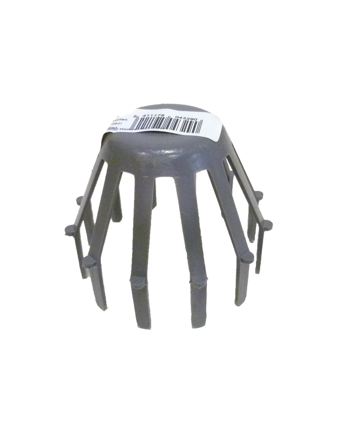 Colector de hojas para bajante de 80 mm. Este ingenioso colector permite reunir y retener las hojas en la boca superior de la bajante y evitar así que se formen atascos y tapones que obliguen a molestas operaciones de desatranco posteriores.