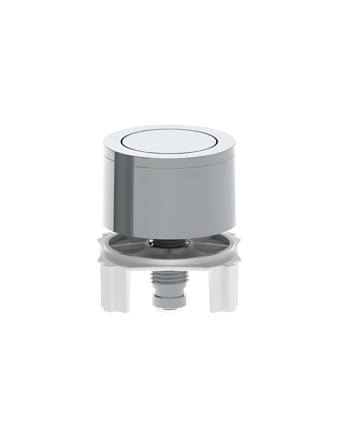 Pulsador cromado de descarga simple, diseñado para sistemas de cisternas de inodoros.