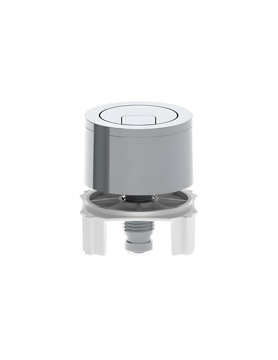 Pulsador cromado de descarga doble, diseñado para sistemas de cisternas de inodoros.