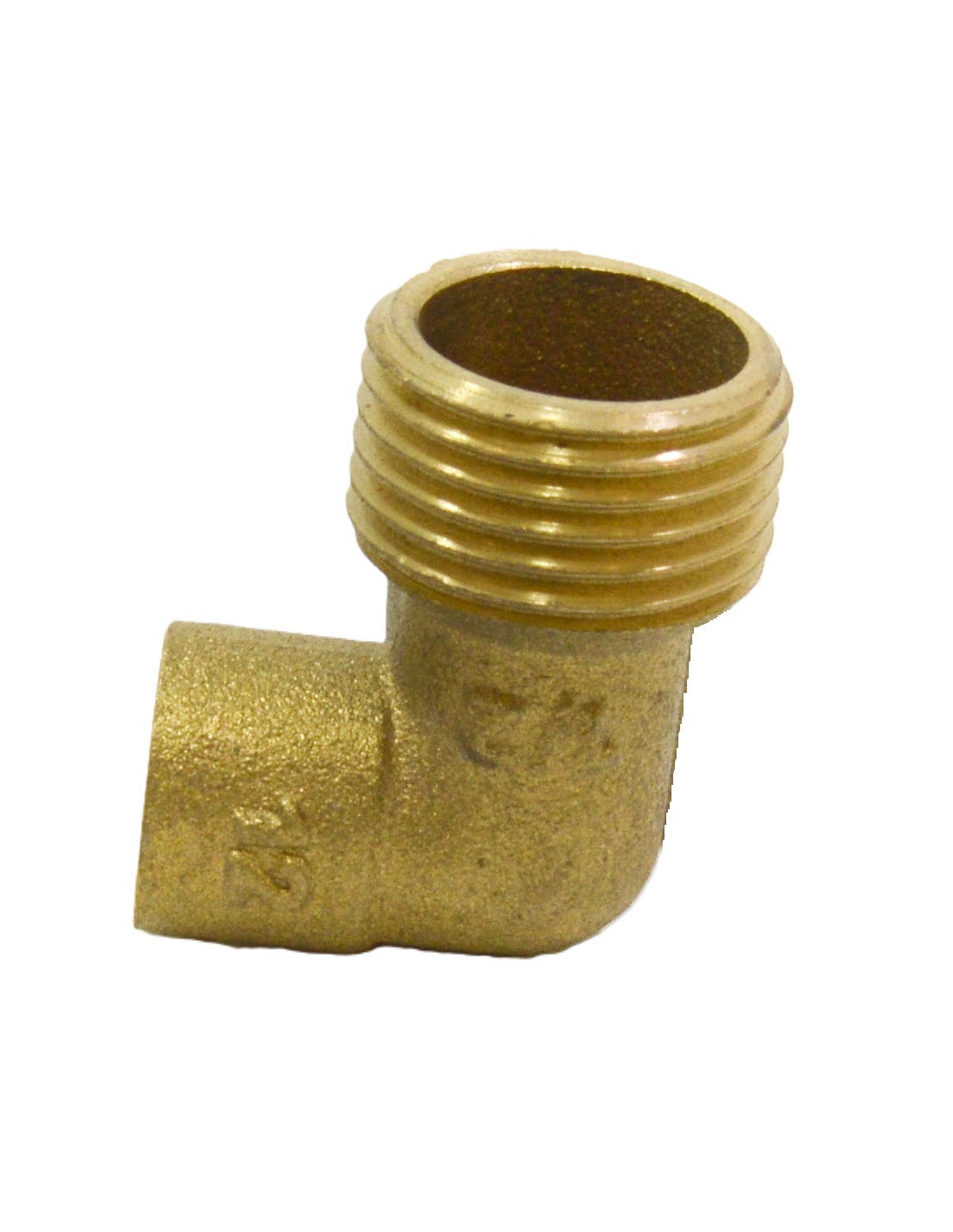 Codo de 90° para soldar con rosca macho de 1/2". Permite la conexión en ángulo recto con una tubería con conexión hembra, garantizando así un flujo eficiente y seguro en sistemas de fontanería.