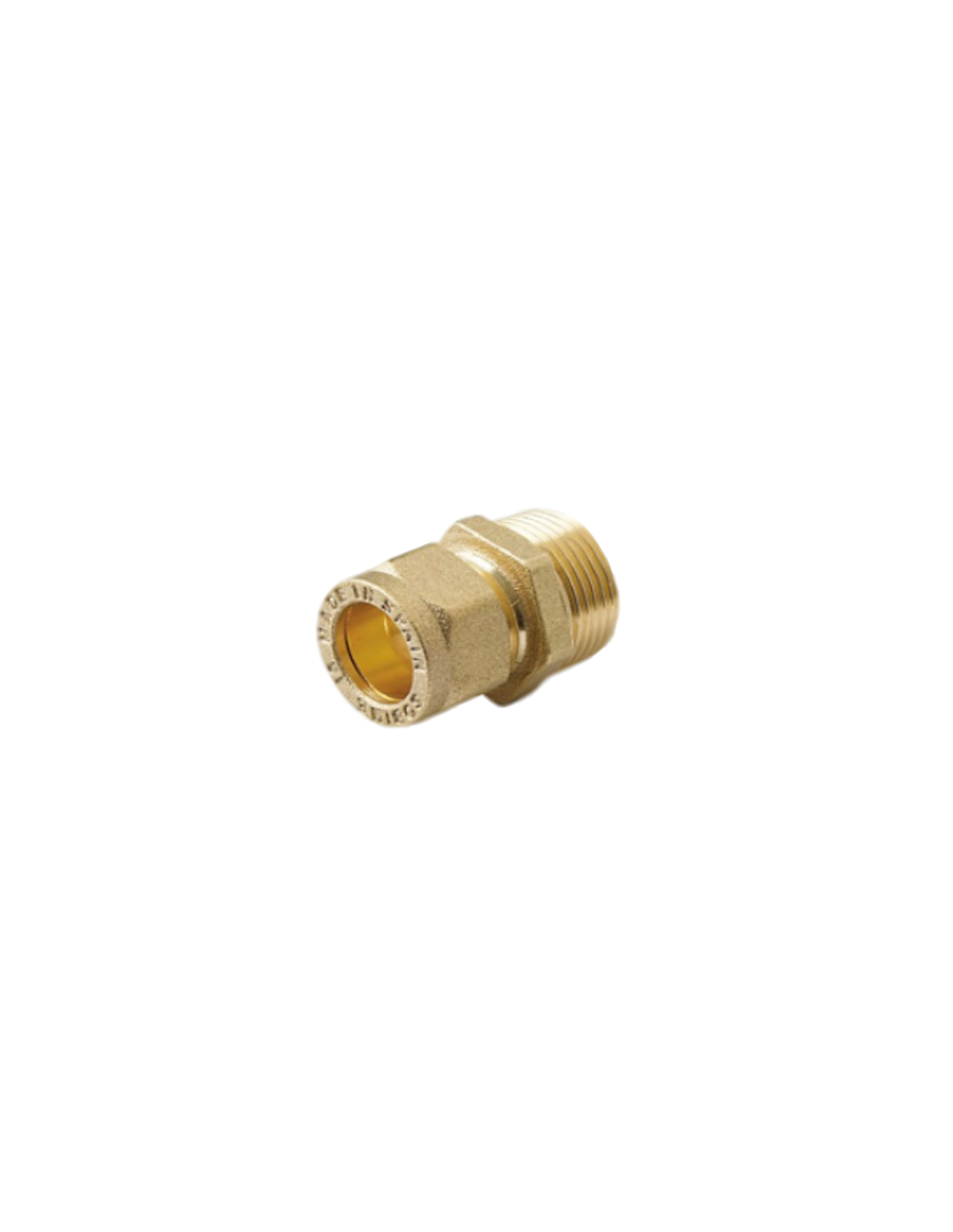 Unión bicono de compresión para unir tubos de 12 mm de diámetro con rosca macho de media pulgada (1/2''), permite una conexión firme y segura entre dos extremos de tubo mediante roscado y conexión sin soldadura.