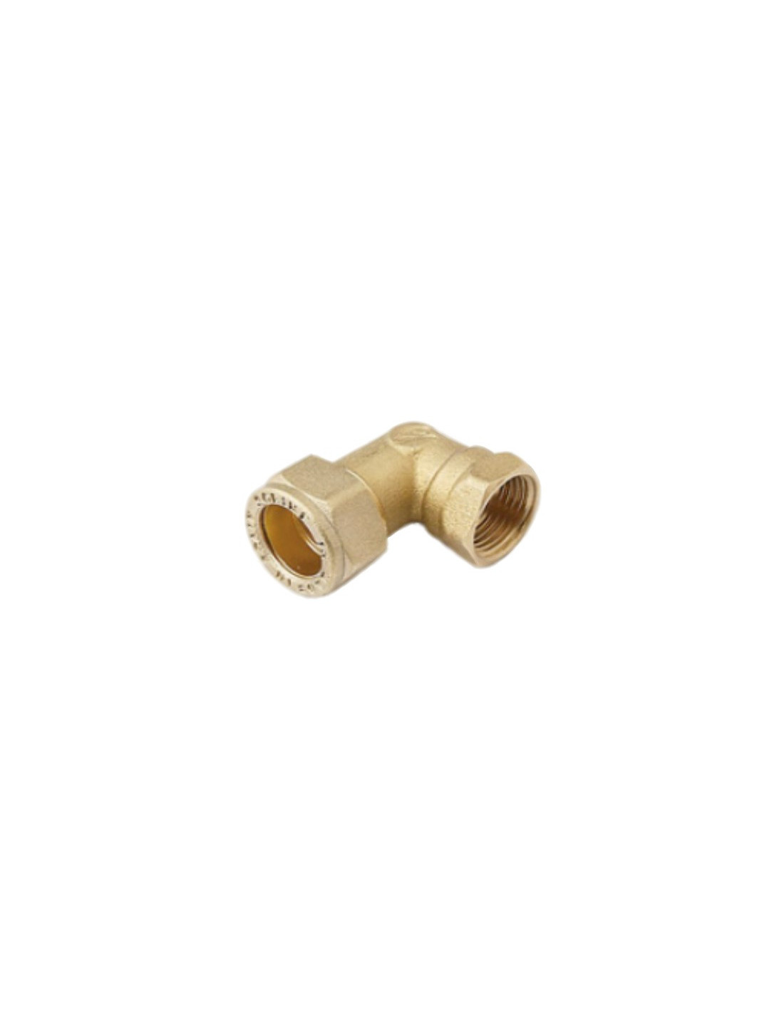 Codo bicono de compresión para unir en ángulo de 90° dos tubos con rosca hembra de media pulgada (1/2"), permite una conexión firme y segura entre dos extremos de tubo mediante roscado y conexión sin soldadura.