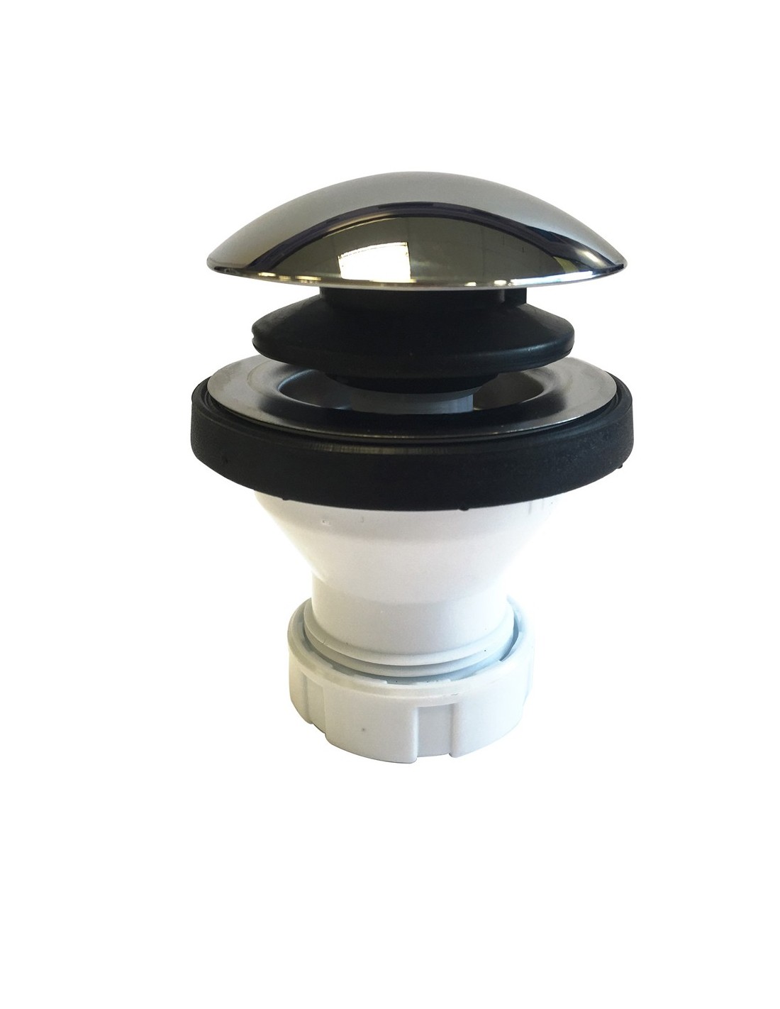 Válvula con sistema de pulsación clic-clac de 70 mm de diámetro para lavabos y bidés. Disponible en dos conexiones: