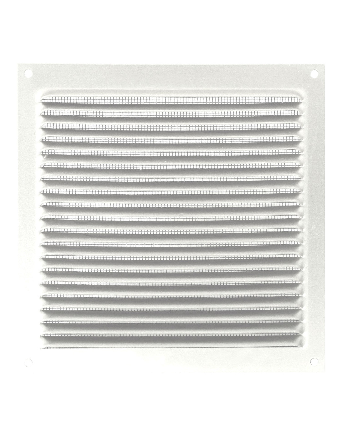 Rejilla cuadrada de aluminio de color blanco para exterior con mosquitera incluida que garantiza una protección total contra insectos.